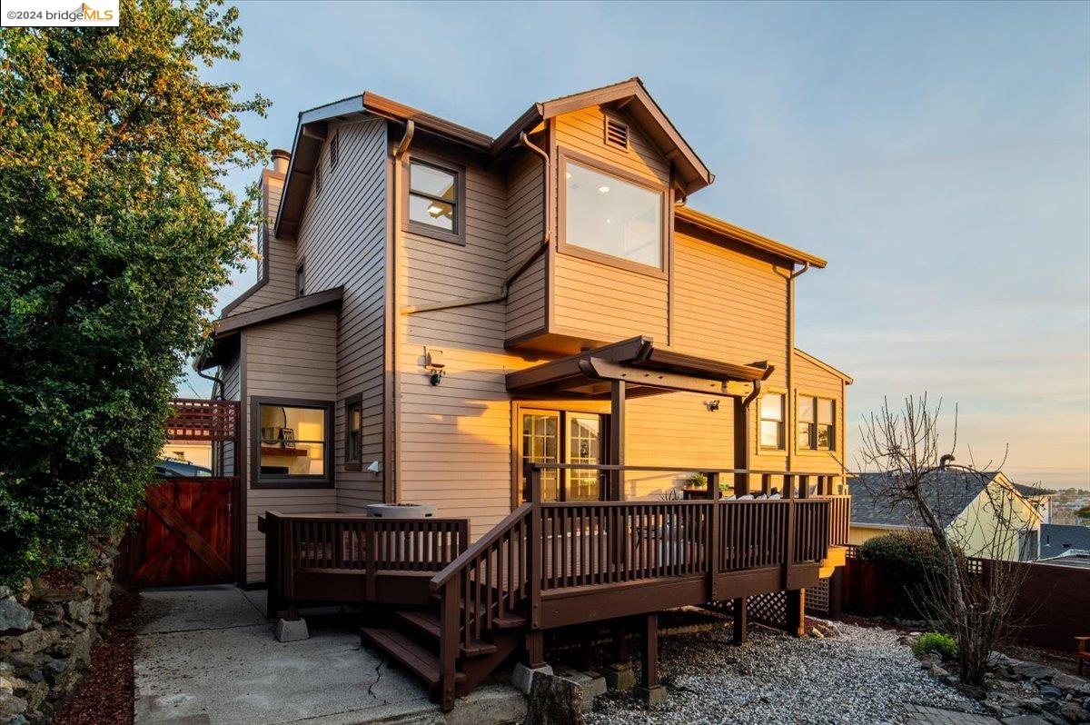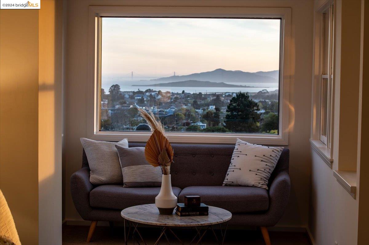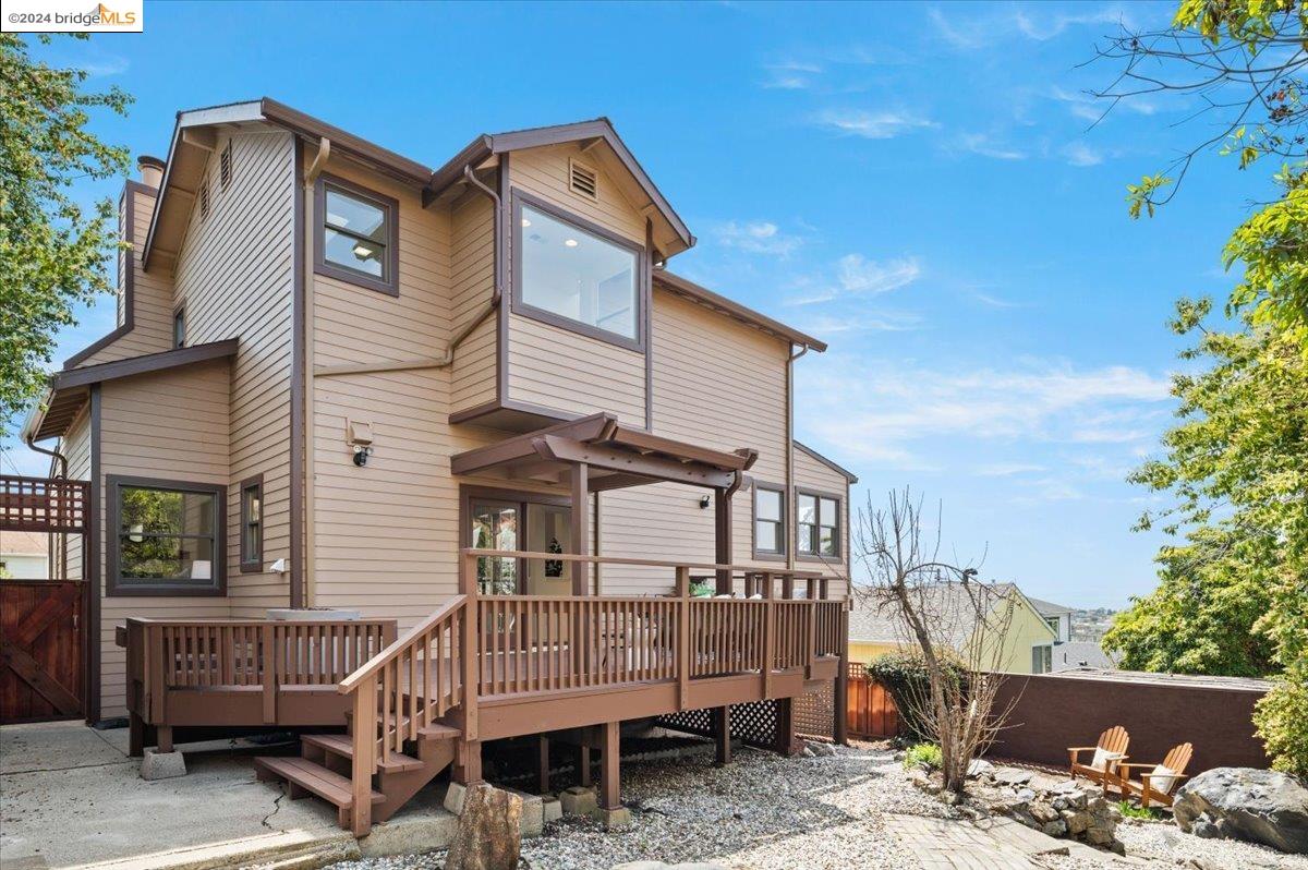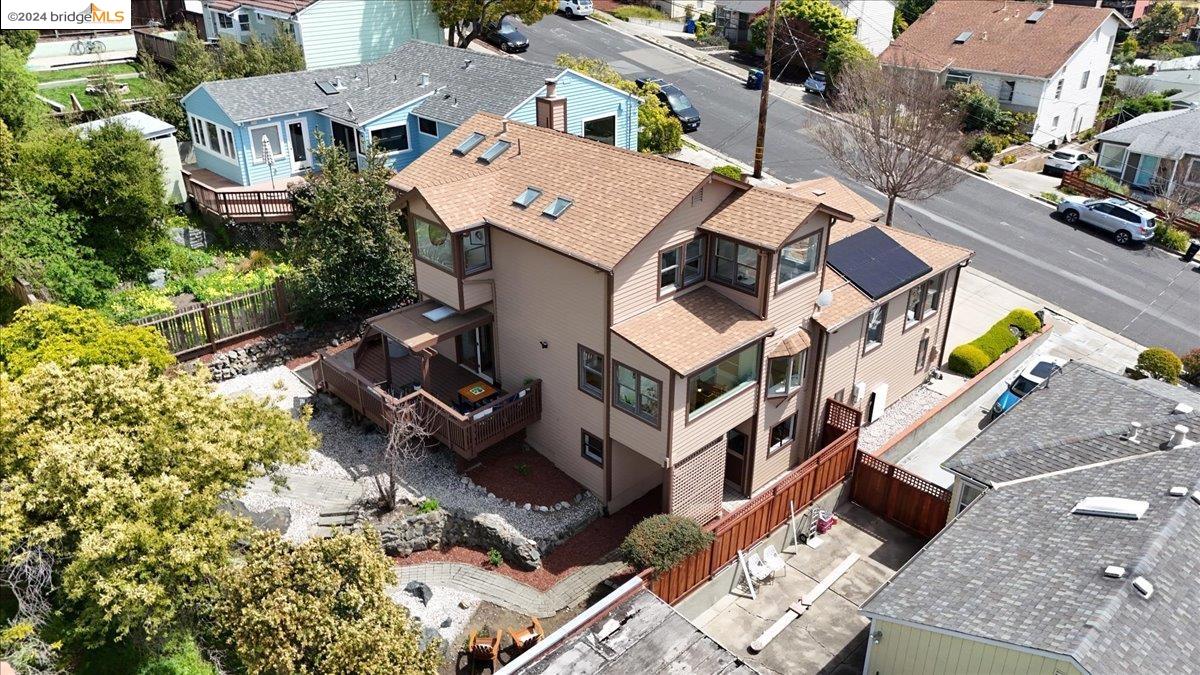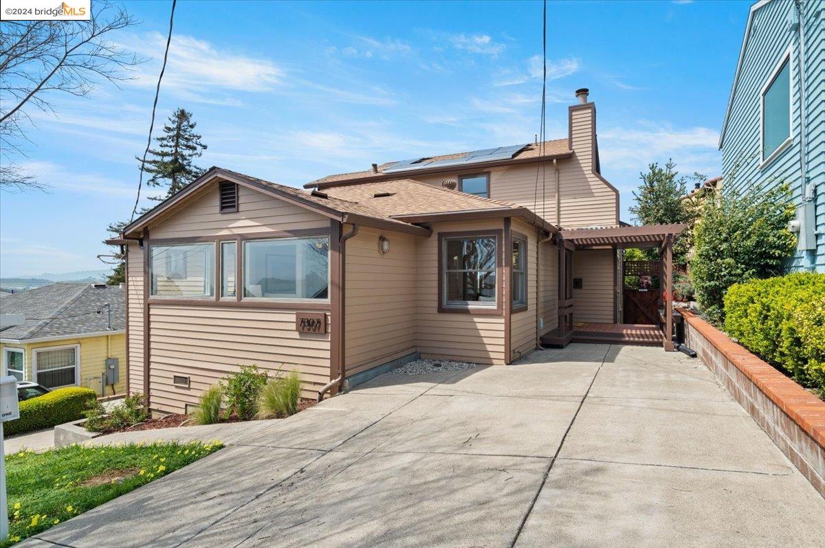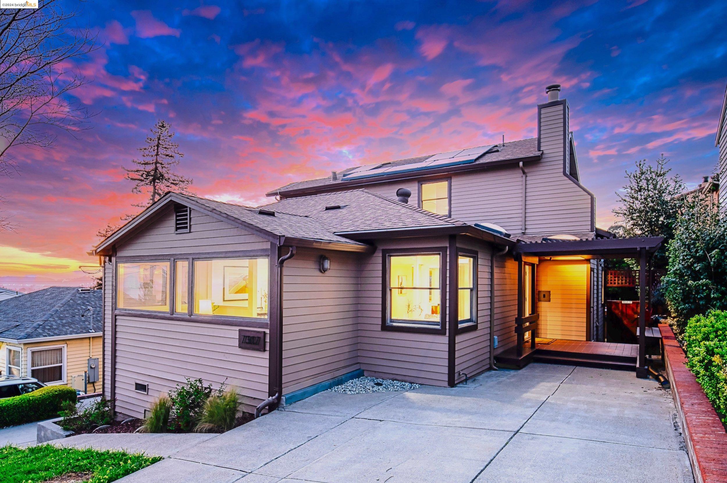 Elevate your lifestyle with breathtaking views and spacious luxury. This stunning residence offers panoramic vistas of the bay, Golden Gate Bridge, and San Francisco skyline from multiple rooms, providing a daily dose of inspiration and tranquility. Boasting over 2500 square feet of living space, this home is bathed in natural light thanks to abundant windows and skylights that showcase its attractive architectural lines. Step inside to discover a brand-new kitchen, complete with custom cabinets, quartz countertops, and stainless-steel appliances, including a gas range and breakfast bar. The kitchen seamlessly flows into the family room with a cozy fireplace, creating the perfect space for gatherings and relaxation. Entertain with ease on the sizeable deck and yard off the kitchen/family room. The main level features a living room, sunroom, dining room and a separate office space, all illuminated by recessed modern lighting and featuring refinished hardwood floors. The main level also offers two bedrooms and a full bath, as well as a convenient half bath with stackable washer/dryer. Upstairs, the generous primary suite awaits, complete with panoramic views, a sitting area, large soaking tub, standalone shower, and walk-in closet. Additional features include a second laundry area, storage space, two-car garage, seismic retrofitting and a new solar system with battery back-up. Enjoy easy commuting with proximity to shopping, BART, freeways, and the Richmond ferry terminal. Plus, indulge in nearby recreational opportunities at parks, Hillside Natural Area, Tilden Park, Wildcat Canyon Regional Park, and regional shorelines. Experience the pinnacle of California living at 7307 Gladys Avenue—a home where every moment is filled with beauty, comfort, and possibility.