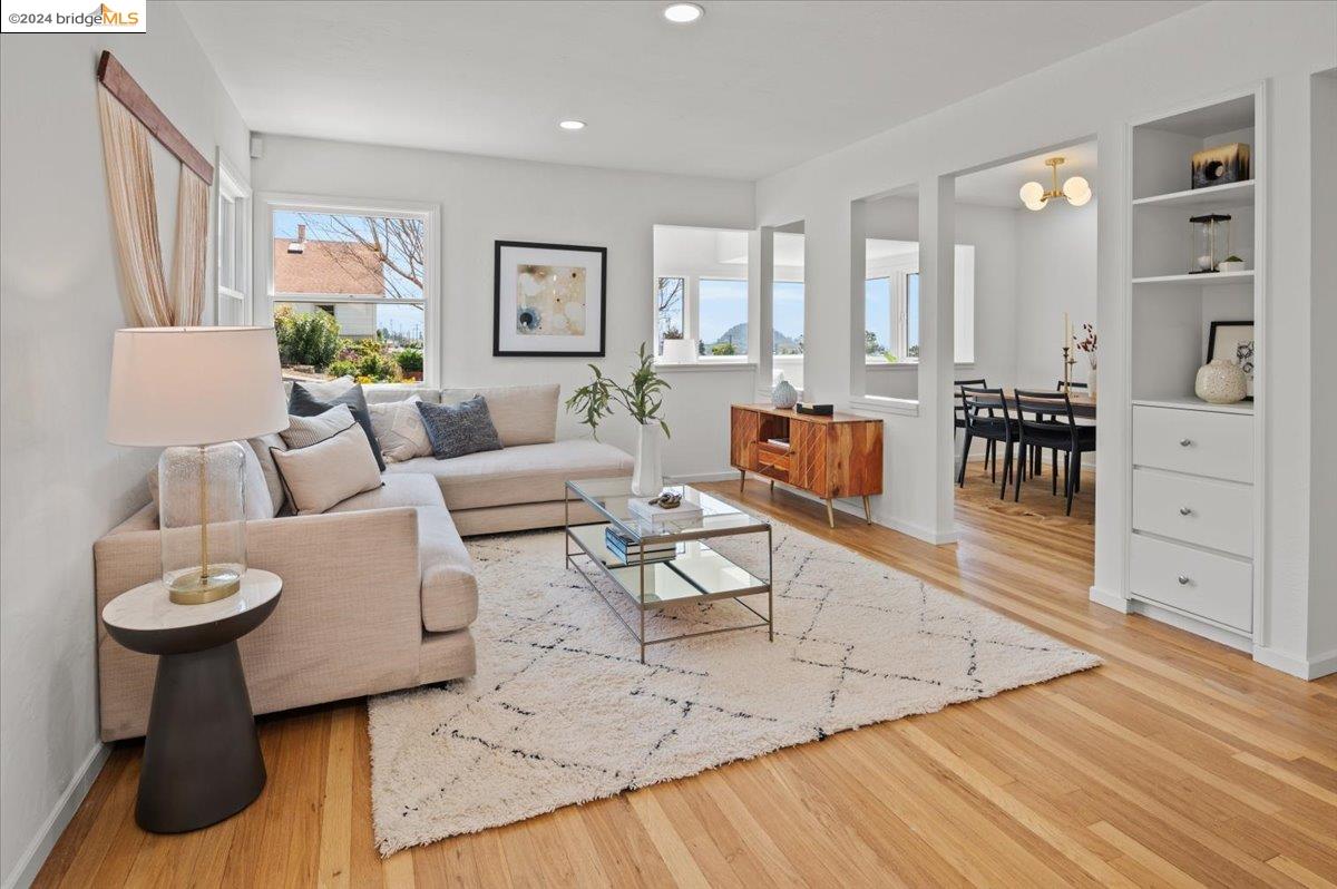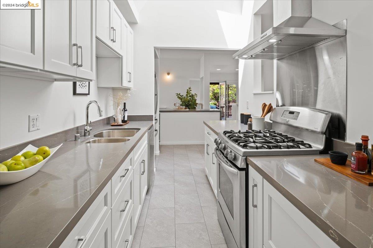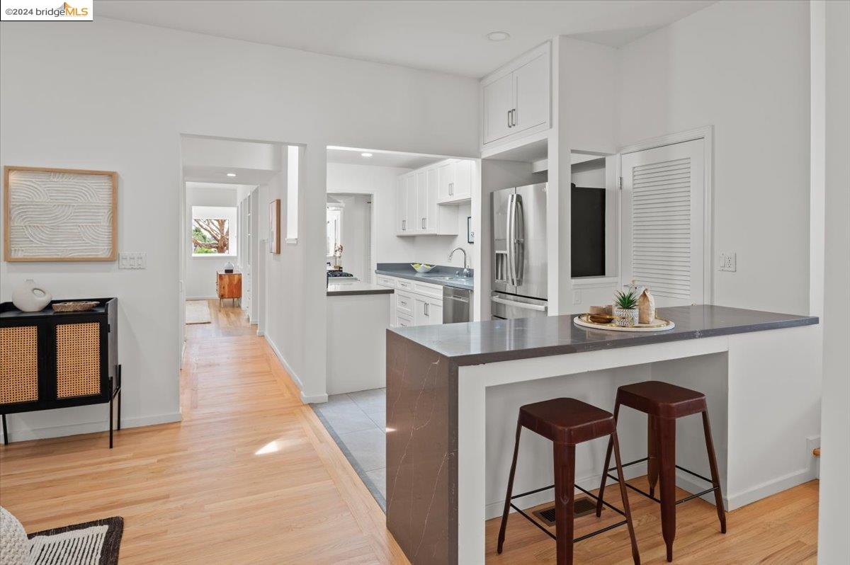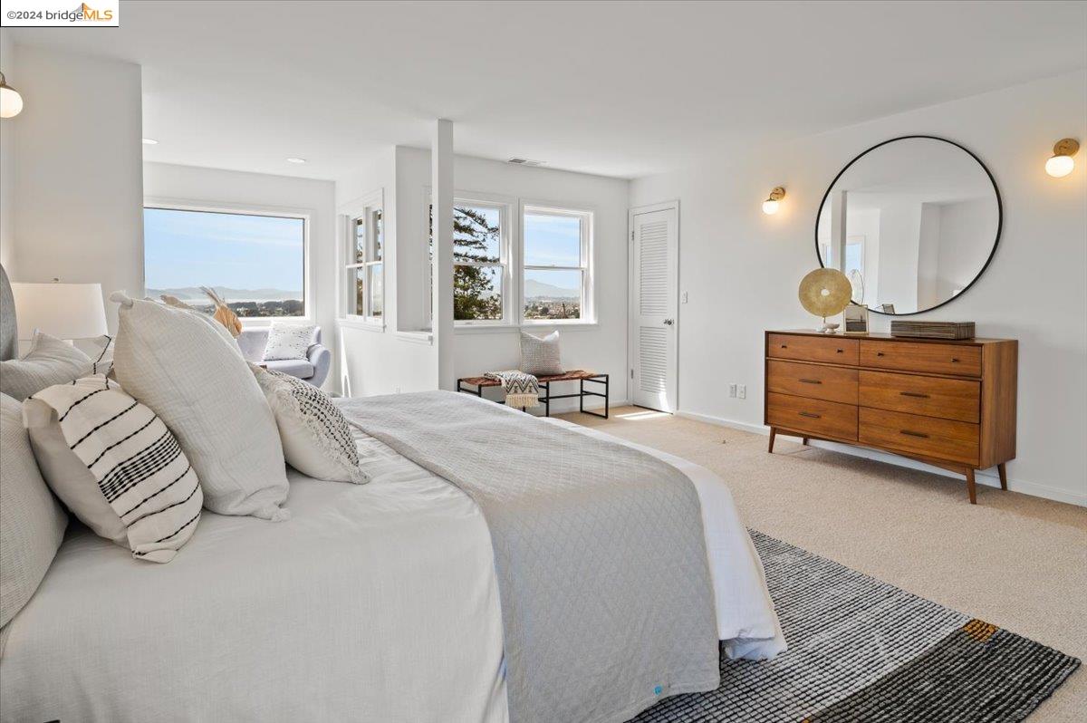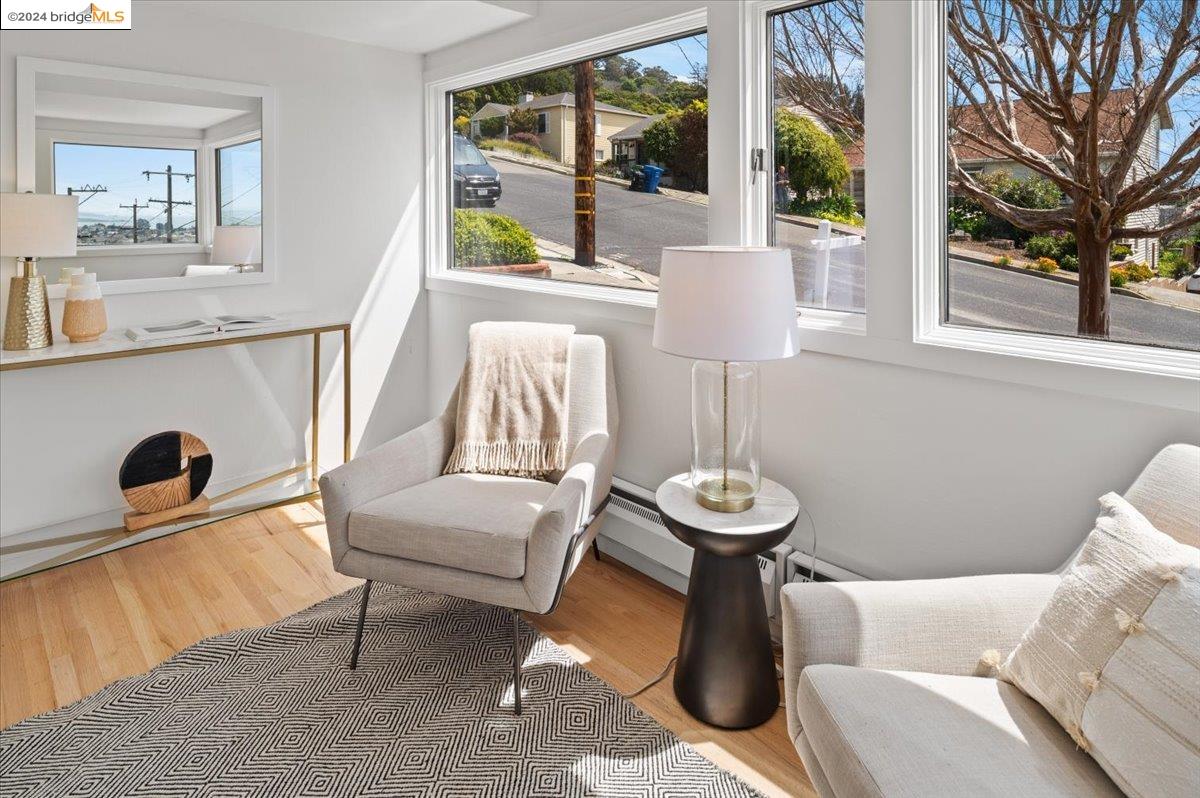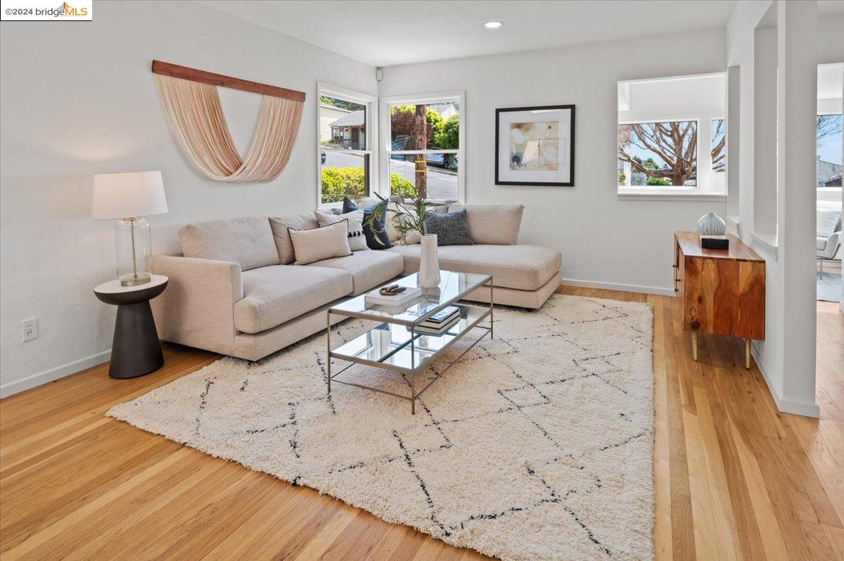 Elevate your lifestyle with breathtaking views and spacious luxury. This stunning residence offers panoramic vistas of the bay, Golden Gate Bridge, and San Francisco skyline from multiple rooms, providing a daily dose of inspiration and tranquility. Boasting over 2500 square feet of living space, this home is bathed in natural light thanks to abundant windows and skylights that showcase its attractive architectural lines. Step inside to discover a brand-new kitchen, complete with custom cabinets, quartz countertops, and stainless-steel appliances, including a gas range and breakfast bar. The kitchen seamlessly flows into the family room with a cozy fireplace, creating the perfect space for gatherings and relaxation. Entertain with ease on the sizeable deck and yard off the kitchen/family room. The main level features a living room, sunroom, dining room and a separate office space, all illuminated by recessed modern lighting and featuring refinished hardwood floors. The main level also offers two bedrooms and a full bath, as well as a convenient half bath with stackable washer/dryer. Upstairs, the generous primary suite awaits, complete with panoramic views, a sitting area, large soaking tub, standalone shower, and walk-in closet. Additional features include a second laundry area, storage space, two-car garage, seismic retrofitting and a new solar system with battery back-up. Enjoy easy commuting with proximity to shopping, BART, freeways, and the Richmond ferry terminal. Plus, indulge in nearby recreational opportunities at parks, Hillside Natural Area, Tilden Park, Wildcat Canyon Regional Park, and regional shorelines. Experience the pinnacle of California living at 7307 Gladys Avenue—a home where every moment is filled with beauty, comfort, and possibility.
