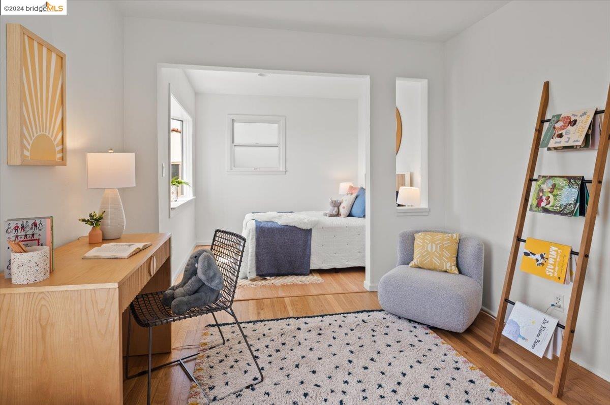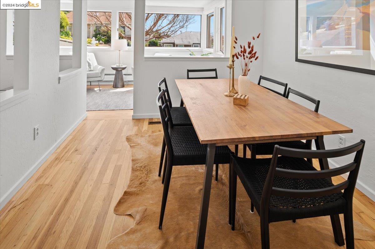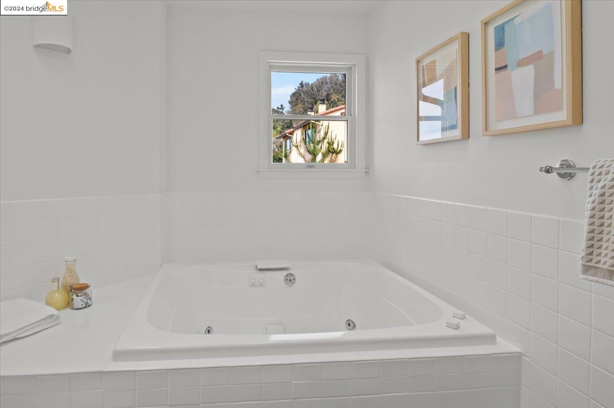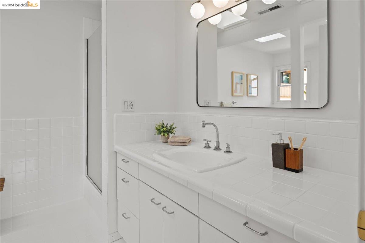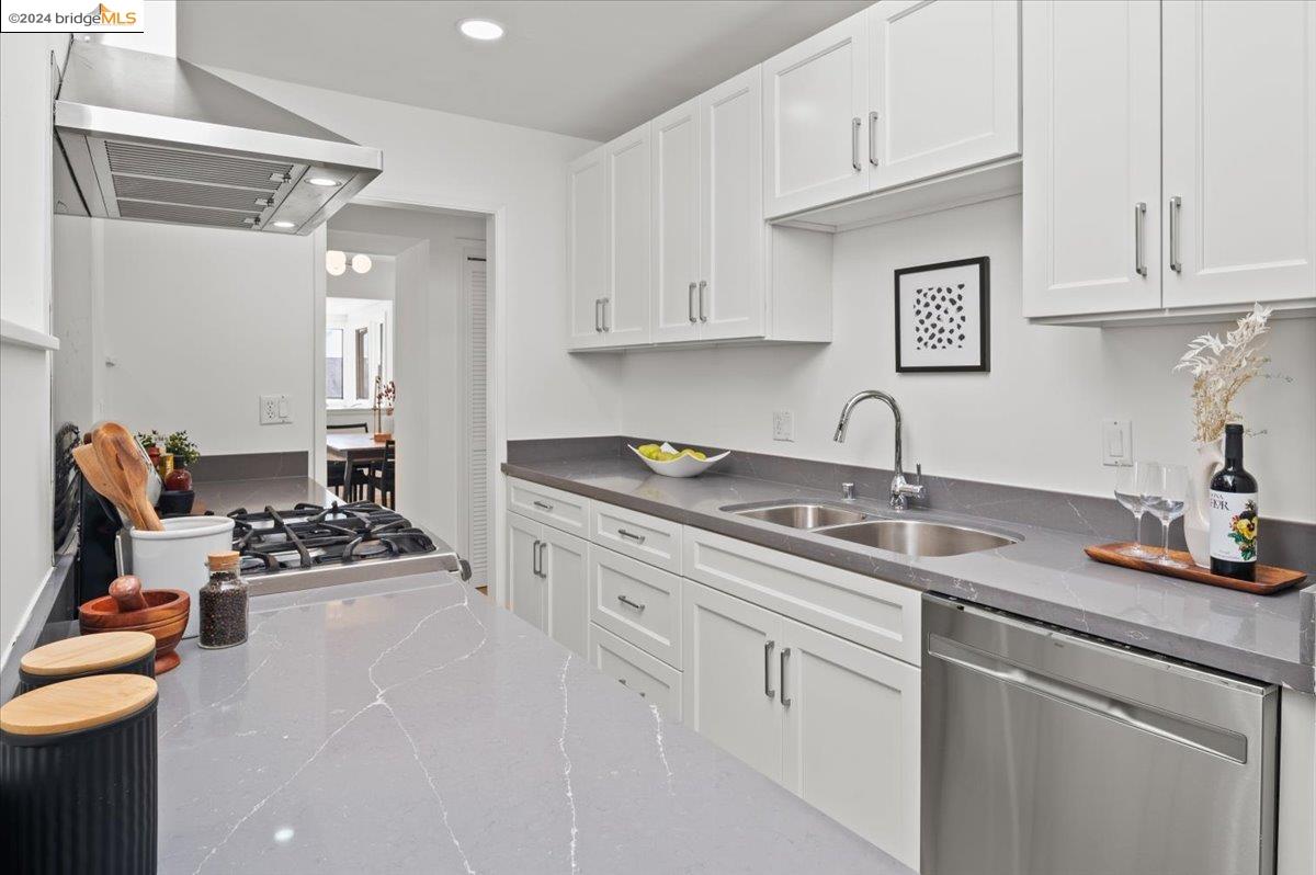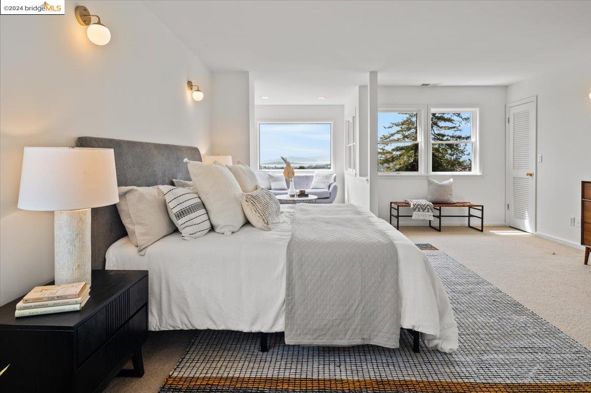 Elevate your lifestyle with breathtaking views and spacious luxury. This stunning residence offers panoramic vistas of the bay, Golden Gate Bridge, and San Francisco skyline from multiple rooms, providing a daily dose of inspiration and tranquility. Boasting over 2500 square feet of living space, this home is bathed in natural light thanks to abundant windows and skylights that showcase its attractive architectural lines. Step inside to discover a brand-new kitchen, complete with custom cabinets, quartz countertops, and stainless-steel appliances, including a gas range and breakfast bar. The kitchen seamlessly flows into the family room with a cozy fireplace, creating the perfect space for gatherings and relaxation. Entertain with ease on the sizeable deck and yard off the kitchen/family room. The main level features a living room, sunroom, dining room and a separate office space, all illuminated by recessed modern lighting and featuring refinished hardwood floors. The main level also offers two bedrooms and a full bath, as well as a convenient half bath with stackable washer/dryer. Upstairs, the generous primary suite awaits, complete with panoramic views, a sitting area, large soaking tub, standalone shower, and walk-in closet. Additional features include a second laundry area, storage space, two-car garage, seismic retrofitting and a new solar system with battery back-up. Enjoy easy commuting with proximity to shopping, BART, freeways, and the Richmond ferry terminal. Plus, indulge in nearby recreational opportunities at parks, Hillside Natural Area, Tilden Park, Wildcat Canyon Regional Park, and regional shorelines. Experience the pinnacle of California living at 7307 Gladys Avenue—a home where every moment is filled with beauty, comfort, and possibility.